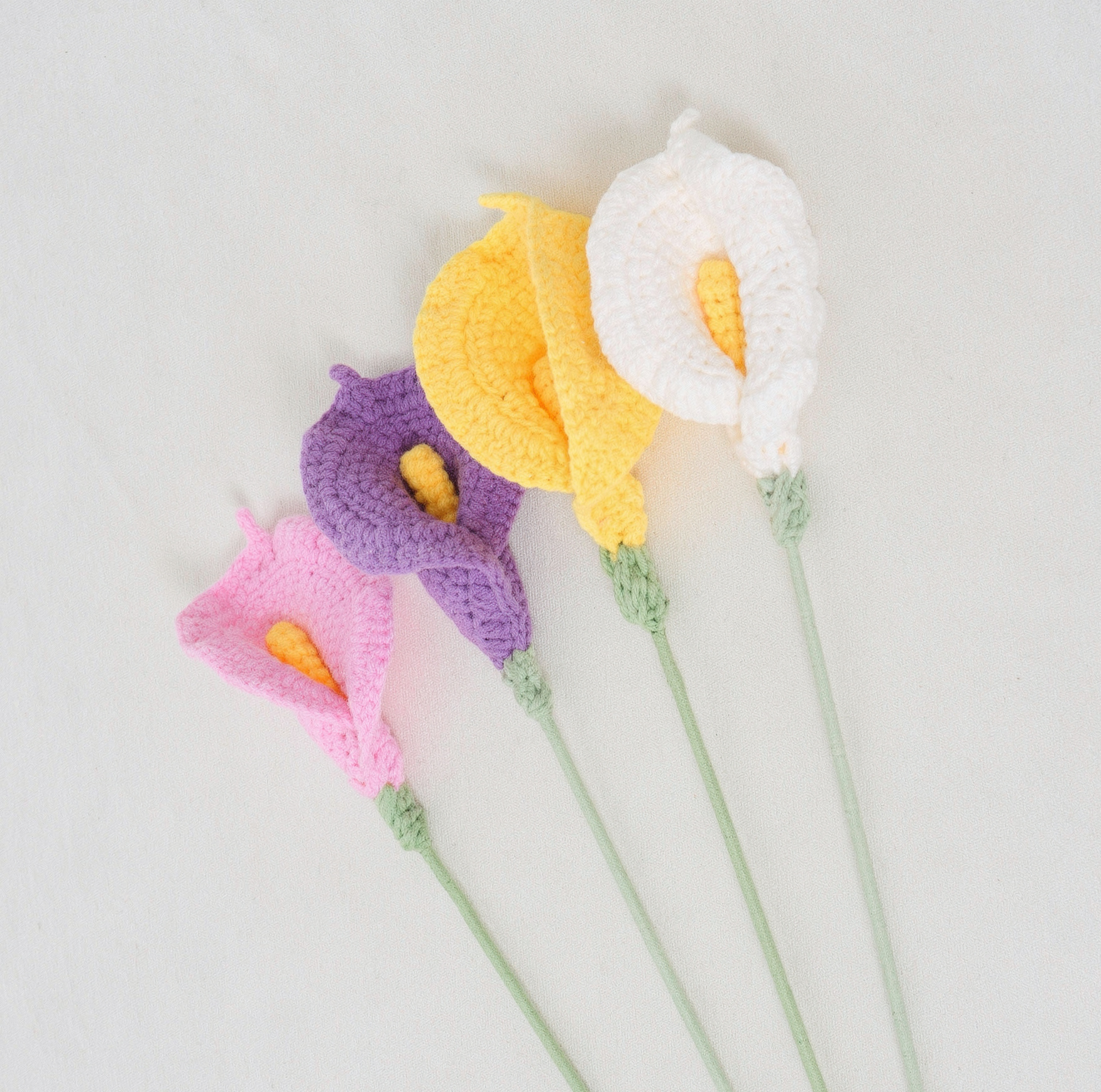 Fleurs d'arums éternelles au crochet, tricotée à la main.