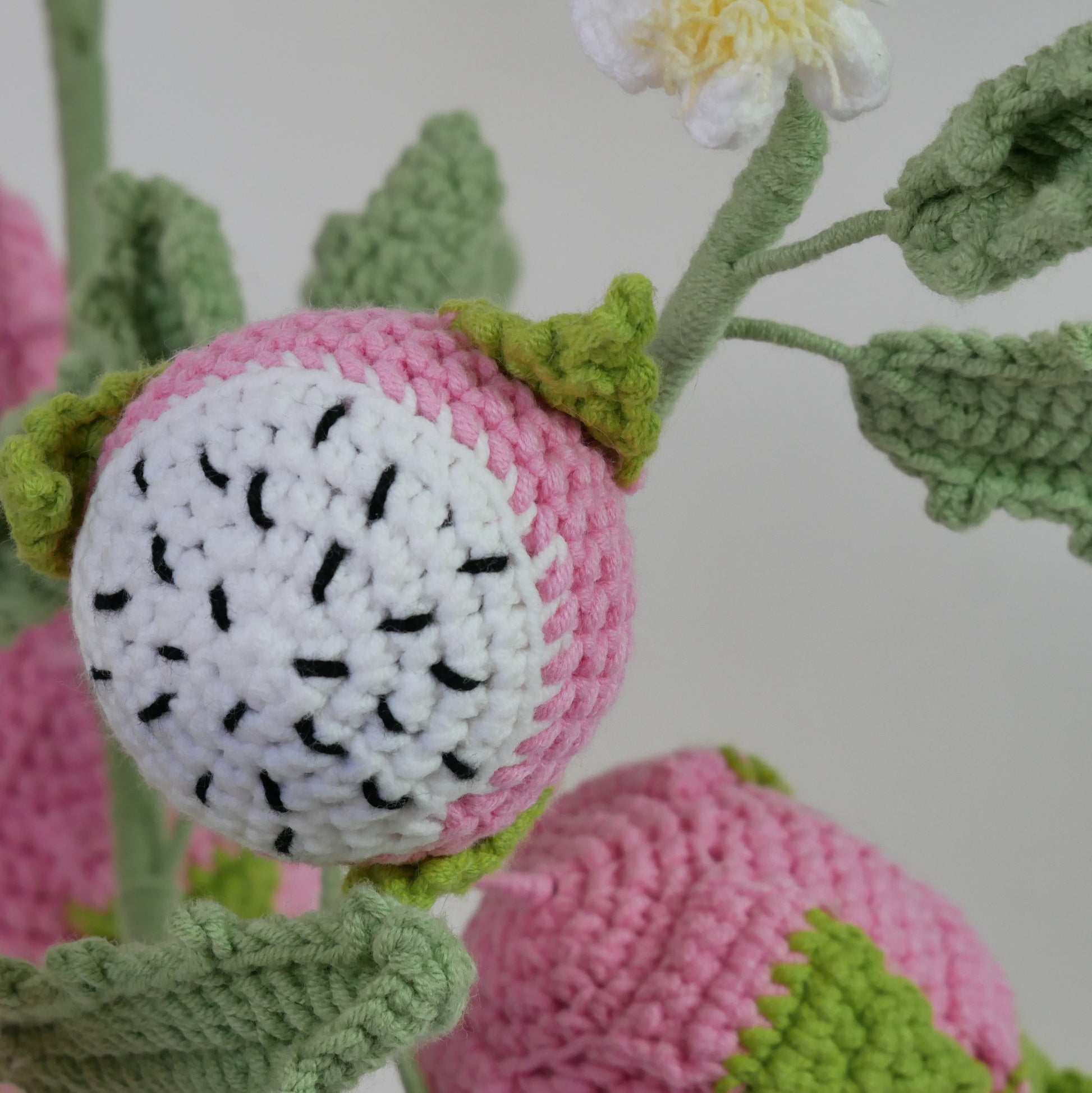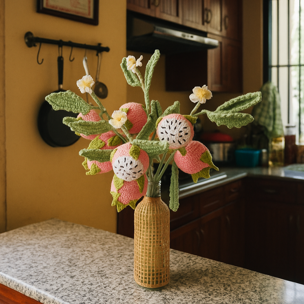 Fruit du dragon au crochet, tricotée à la main. Pour la décoration de la maison ou du bureau.