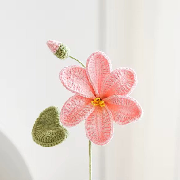 Chaque fleur est délicatement crochetée à la main avec du fil de coton ou de la laine de qualité. Des tiges en fil de fer sont intégrées pour permettre de façonner vos fleurs selon vos envies et leur donner la posture que vous souhaitez.