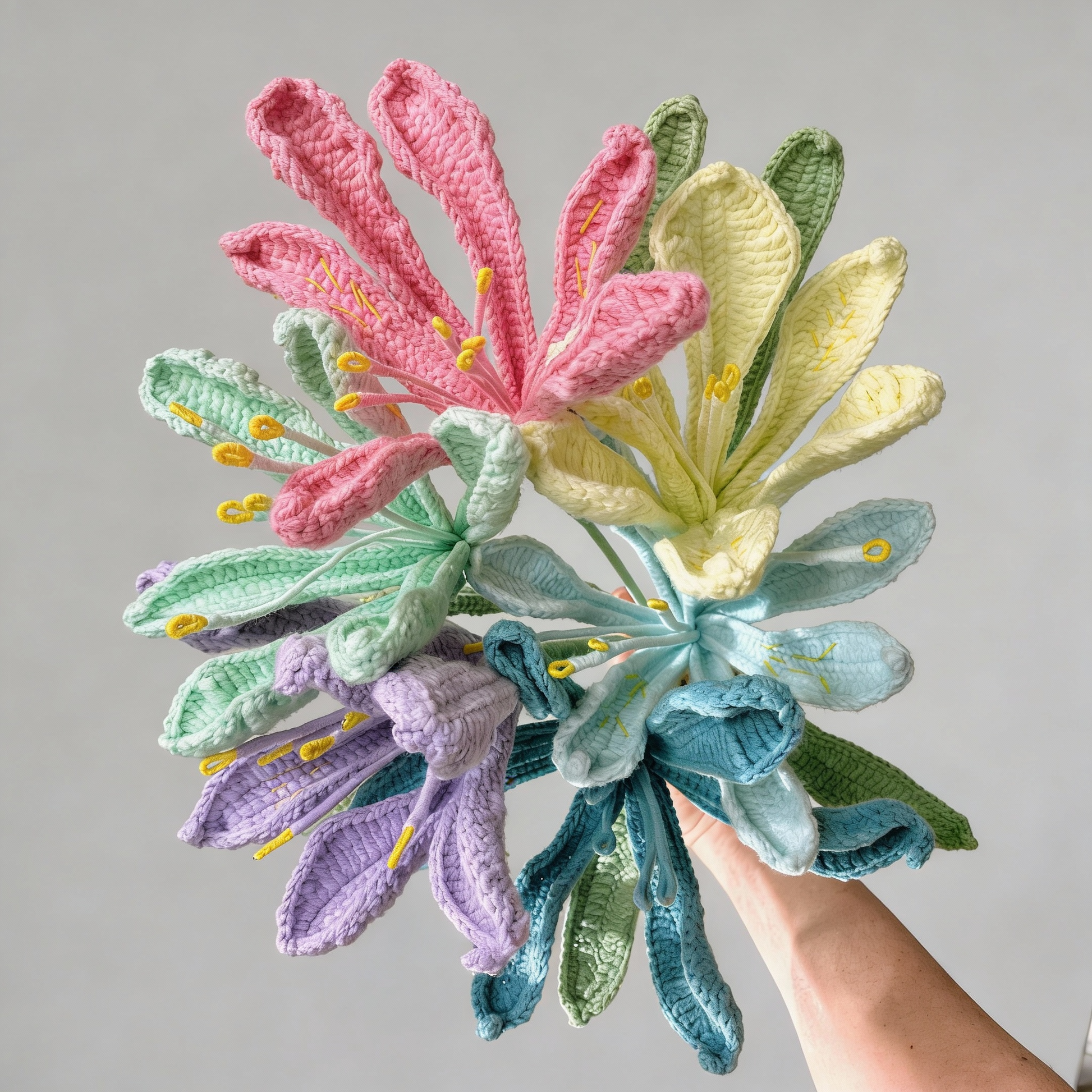 Chaque fleur est délicatement crochetée à la main avec du fil de coton ou de la laine de qualité. Des tiges en fil de fer sont intégrées pour permettre de façonner vos fleurs selon vos envies et leur donner la posture que vous souhaitez.