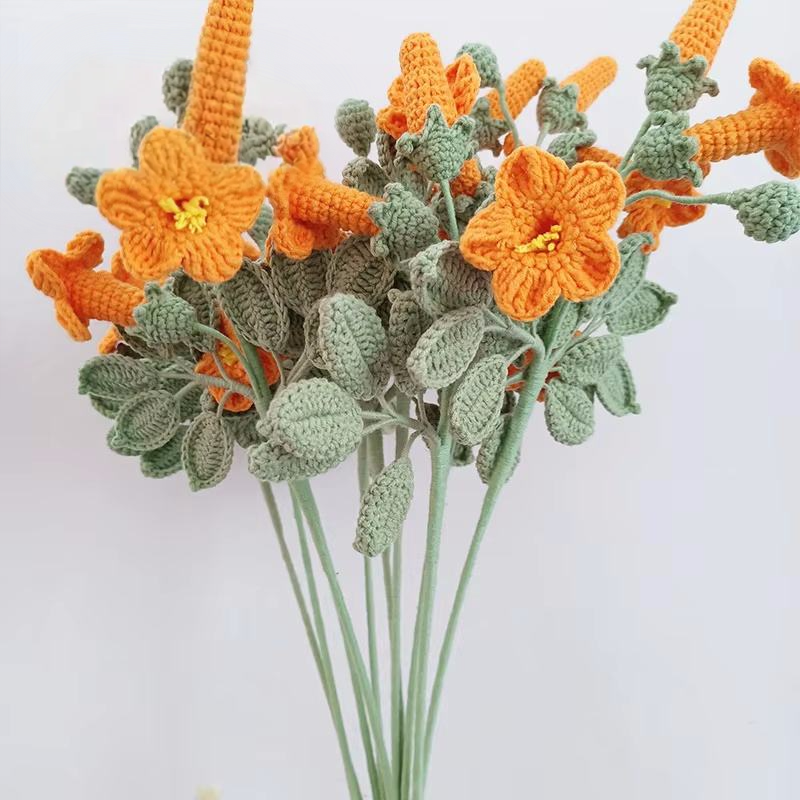 Fleur de bignone éternelle au crochet, tricotée à la main.